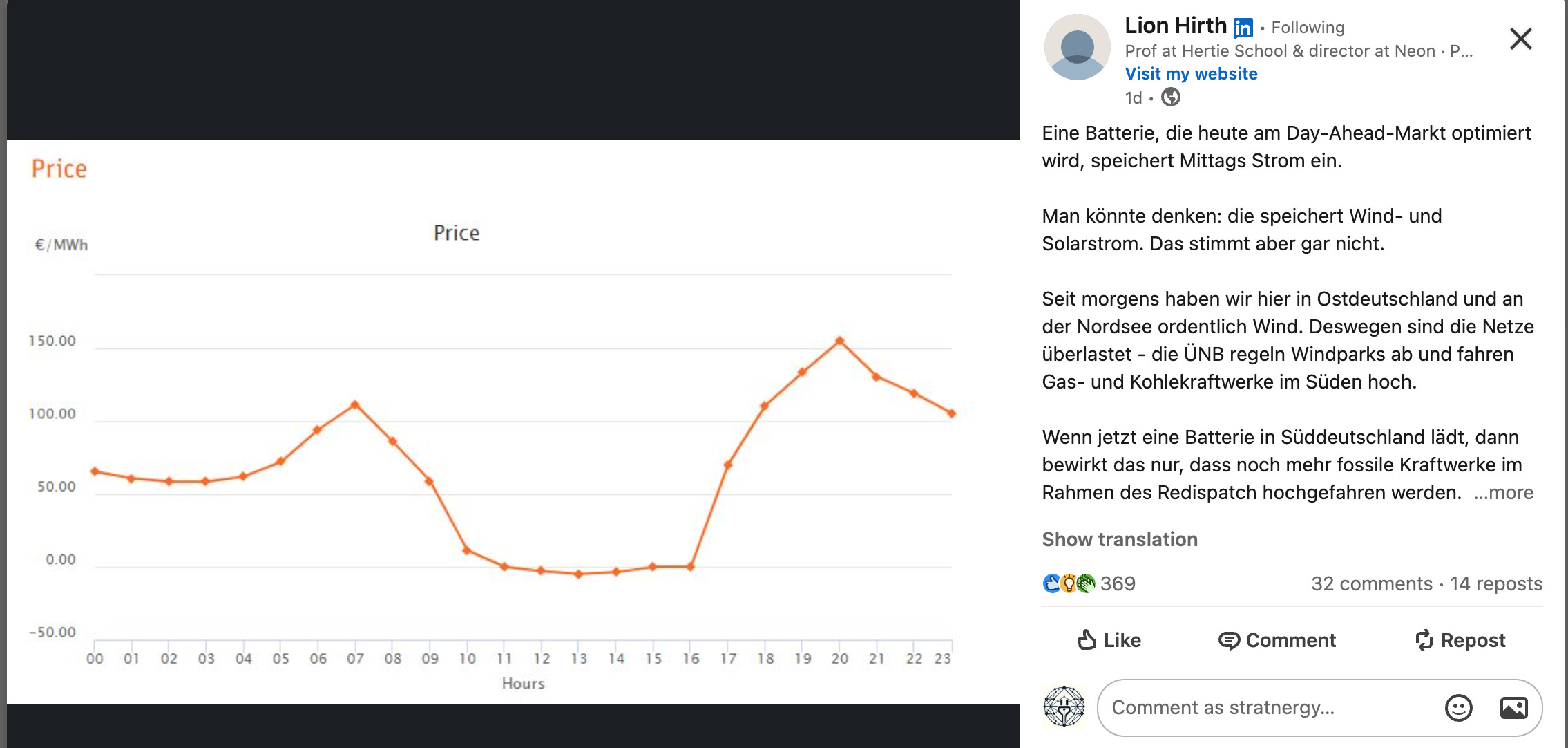 Last week, Lion Hirth posted a scenario highlighting problems caused by Germany’s lack of local electricity pricing.1