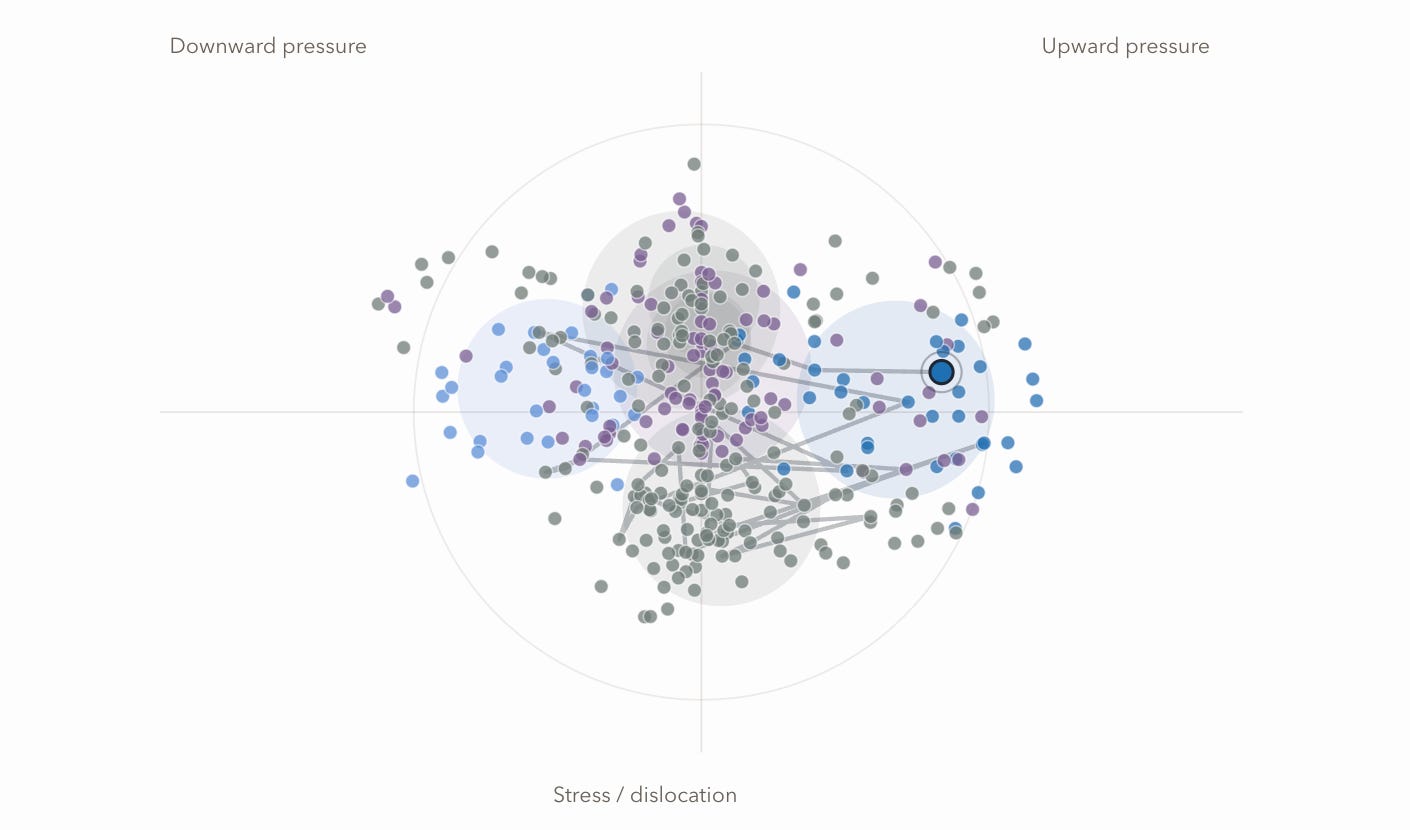 The regime explorer is doing something slightly different from traditional commentary. It helps locate the market in a broader state space: what the nearest neighbours look like, whether the current state sits in a stable pocket, and whether the surrounding terrain looks familiar or fragile.