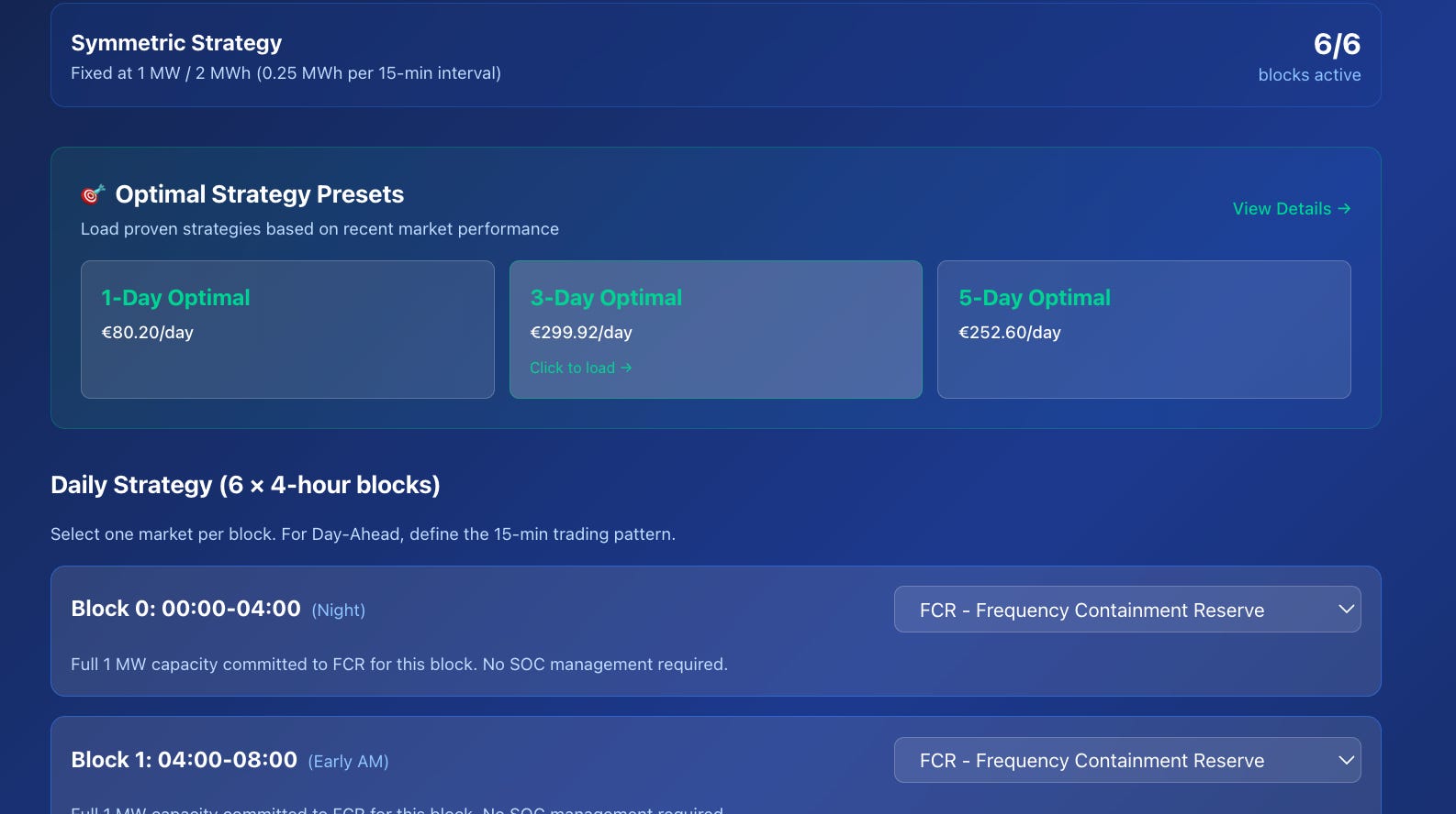 If you think the next 7 days will be similar to the last 3 days then you might like to build on the 3-Day optimal strategy. You are beginning to develop and express a market view that you can test.