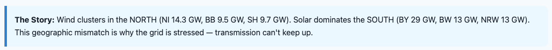 The fundamental problem: Germany’s grid wasn’t built for this. The issue is TWO-FOLD: