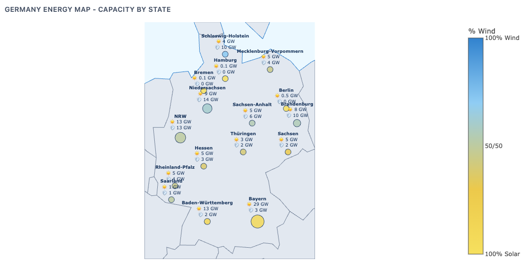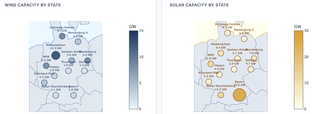 A look at relative share of wind and solar across Germany.